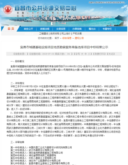 2018年7月13日,我公司以優(yōu)良的信譽(yù)、合適的報(bào)價(jià),從14家勘察單位中脫穎而出,成功入選宜昌市城建基礎(chǔ)設(shè)施項(xiàng)目地質(zhì)勘察服務(wù)商備選庫,本次服務(wù)商備選庫擇優(yōu)選取前七名候選人,服務(wù)期三年。招標(biāo)人為宜昌市住房和城鄉(xiāng)建設(shè)委員會(huì)。服務(wù)工作范圍主要為宜昌市城建基礎(chǔ)設(shè)施項(xiàng)目5萬元(含5萬元)以上至100萬元(不含100萬元)以下,房屋建筑工程及市政工程提供工程地質(zhì)勘察及后續(xù)服務(wù)。
